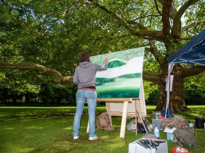 Concours de peinture en plein air. Performance artistique, exposition d’un jour où la création se joue et se dévoile en direct sous les yeux du public.