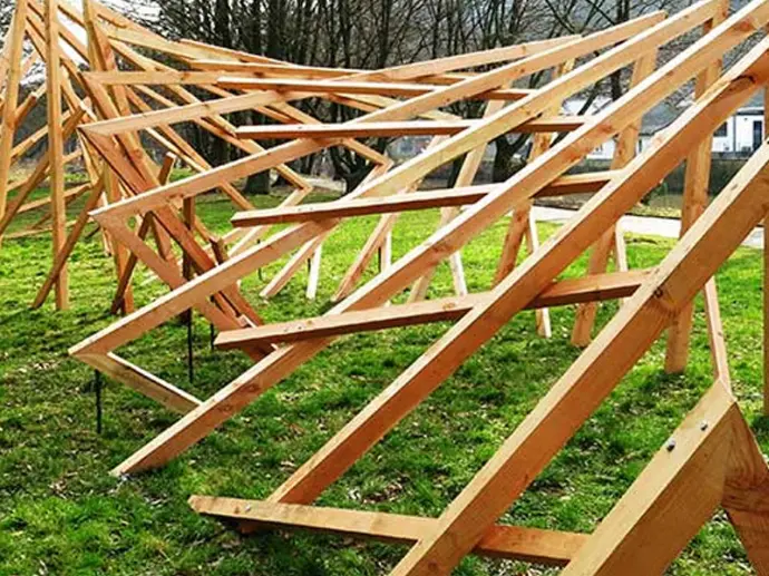 Dans cette œuvre située à côté d’une rivière, les notions de temporalité et de déplacement sont omniprésentes. Elles sont ici matérialisées en jouant sur la répétition et la rotation de cette forme de base.